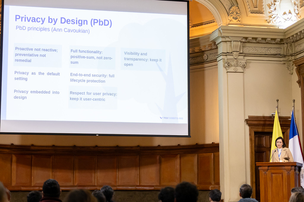 Natalia Jara, Legal Associate en Data Driven Legal, abordó los desafíos de aplicar el principio de privacidad por diseño en contextos locales, señalando la necesidad de adaptar estos estándares a las realidades culturales de cada país. Haz clic aquí para ver la presentación de Natalia Jara.